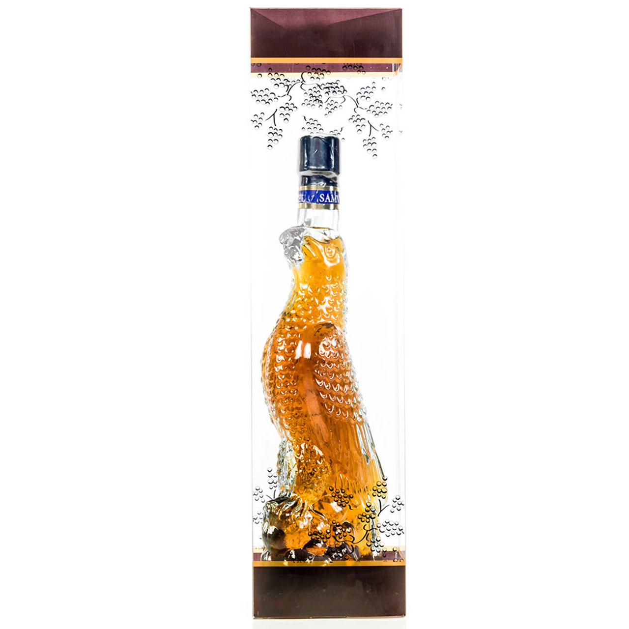 Это искусно изготовленная бутылка в форме орла является ручной работой. Наполнена бутылка высококачественным армянским крепким алкогольным напитком Samvel II XO.